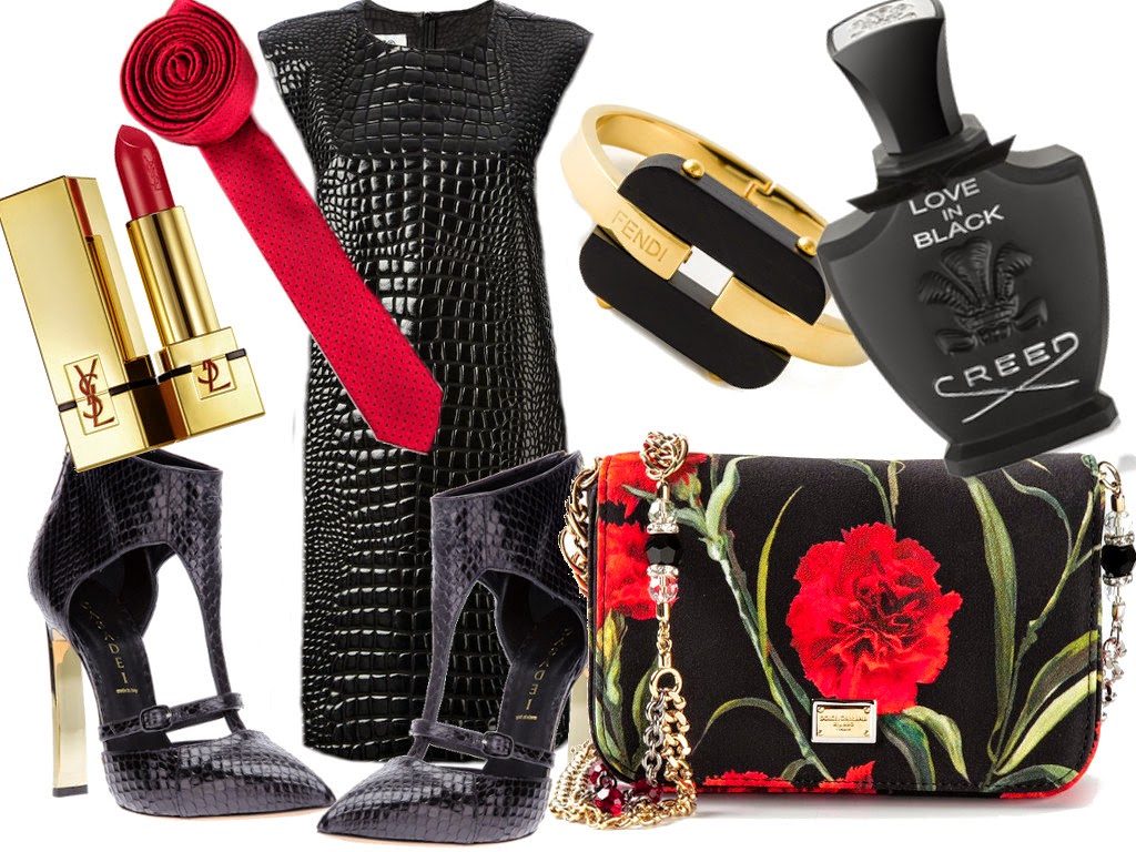 Ecco i dettagli più belli, sexy e peccaminosi per creare un look “Sado chic” per una serata hot con il vostro “ Mr Grey” : Ecco come l’abbiamo realizzato. Moc croc shift dress in pelle by MAISON MARTIN MARGIELA, pumps CASADEI, shoulder bag DOLCE & GABBANA, chain bangle FENDI, fragranza “Love in Black” di CREED e abbiamo completato il look con una cravatta rossa di DOLCE & GABBANA! Questo dettaglio rende il look sexy, completandolo senza la necessità di abbinare pendenti . Il dettaglio da non dimenticare? I collant… ovviamente autoreggenti.